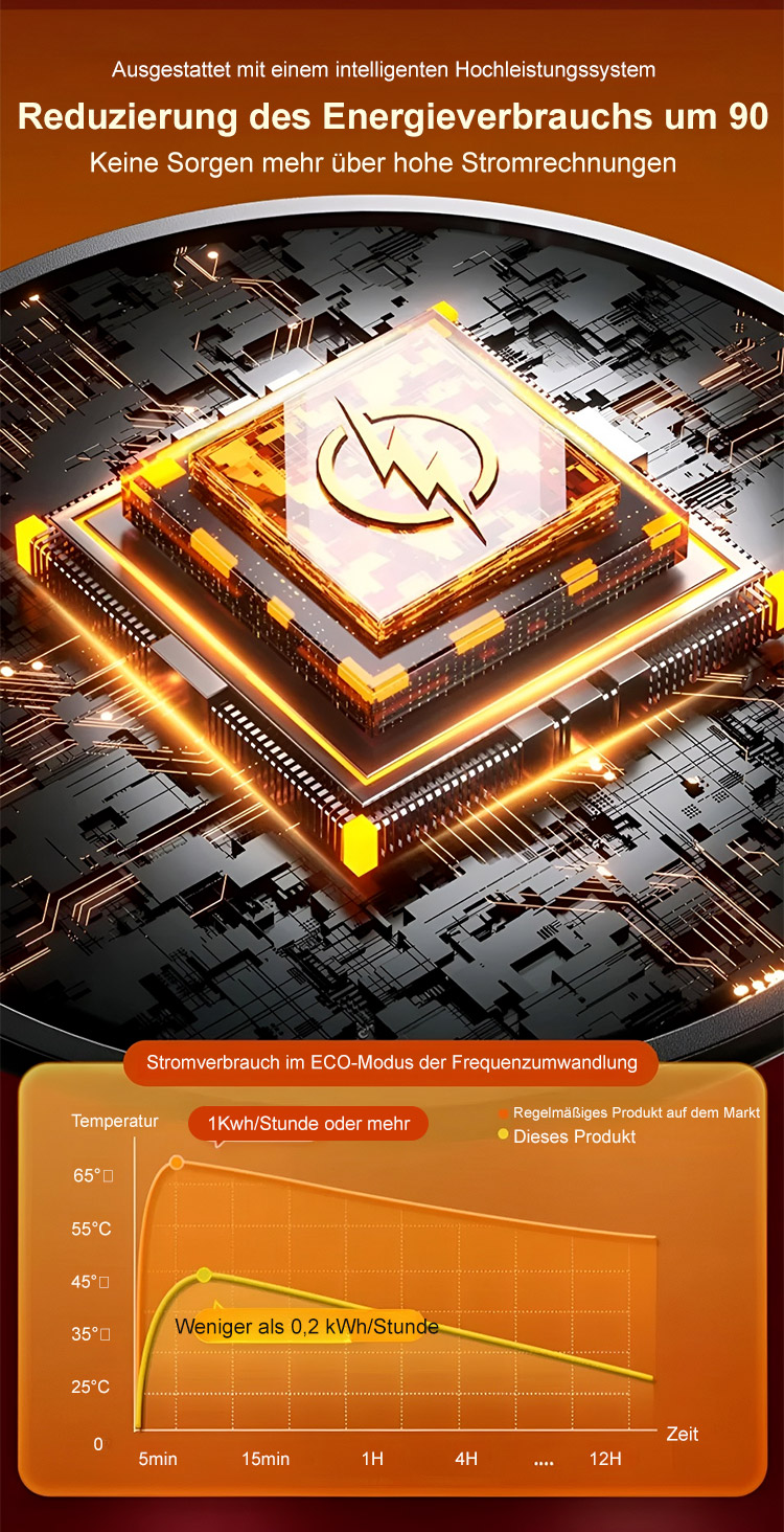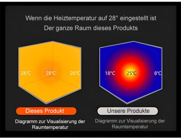 Führende Energiespartechnologie: verbraucht in sieben Tagen nur 1 Kilowattstunde Strom, was weniger als 1 € Stromkosten verursacht, und kann dennoch einen 120 Quadratmeter großen Raum innerhalb von drei Sekunden beheizen